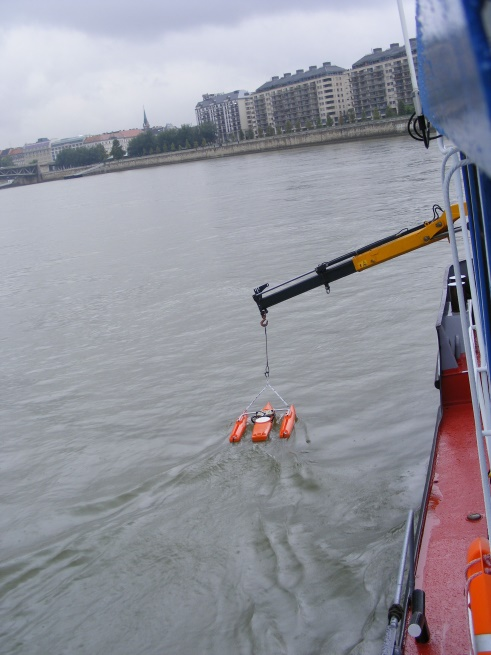 Dr. Csoma János mérőhajó Sió felmérés közben